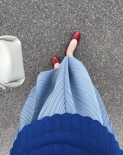 穿着百褶裙的本质,在于保持褶皱的秩序感,同时让裙角偶尔飞舞。