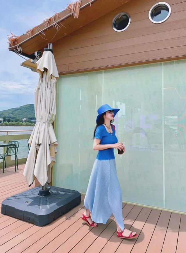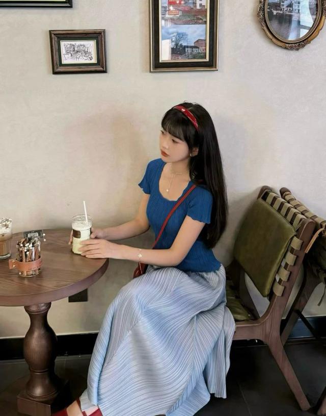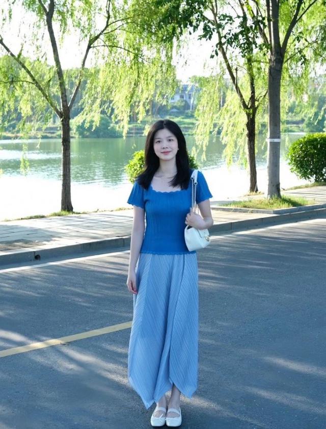 裙子开着层层叠叠的蓝色,就像把夏天的清爽穿在身上一样。
