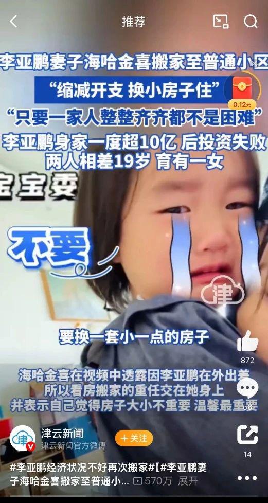 5 月 13 日本,李亚鹏的妻子海哈金喜发布了一段视频,