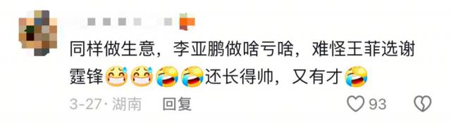 "同样做生意,李亚鹏是做什么亏什么,怪不得王菲选择谢霆锋。"