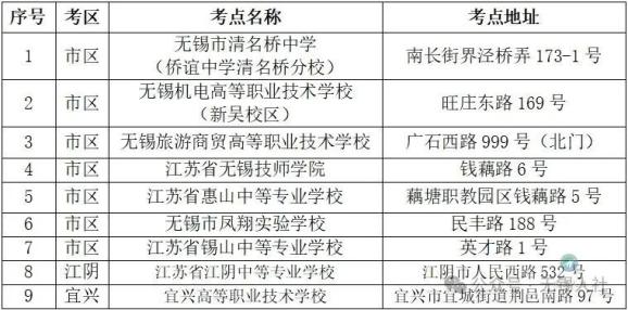 这次社会工作考试有三个考点:无锡市区、江阴考点、宜兴考点。请仔细检查参考的考点和考点。