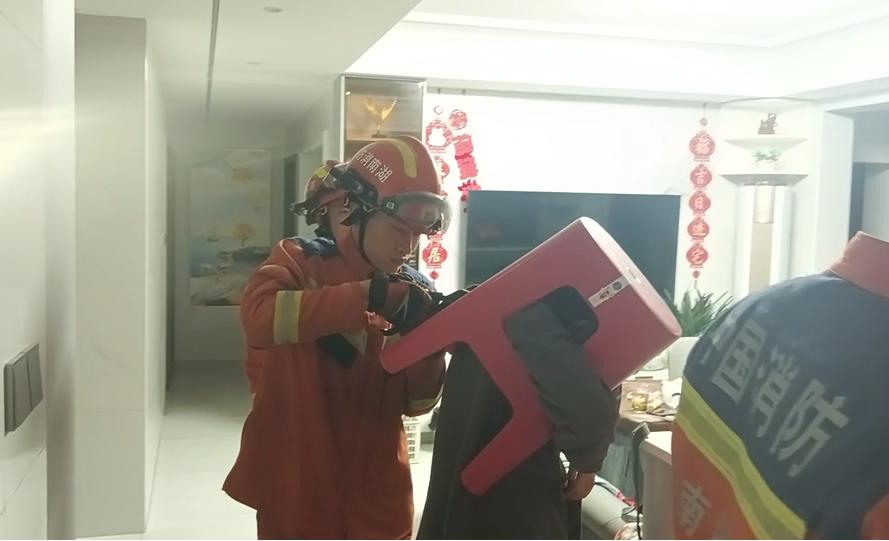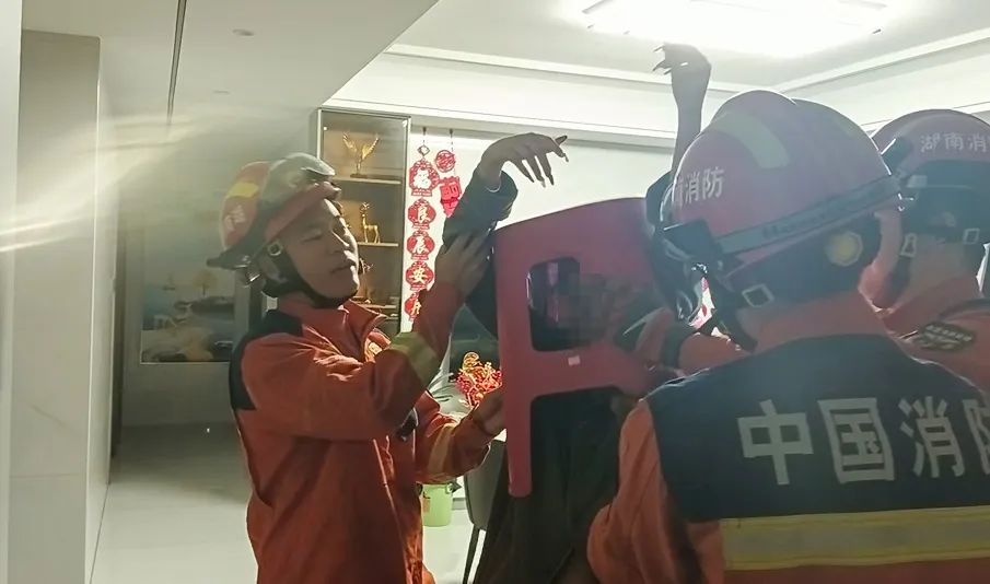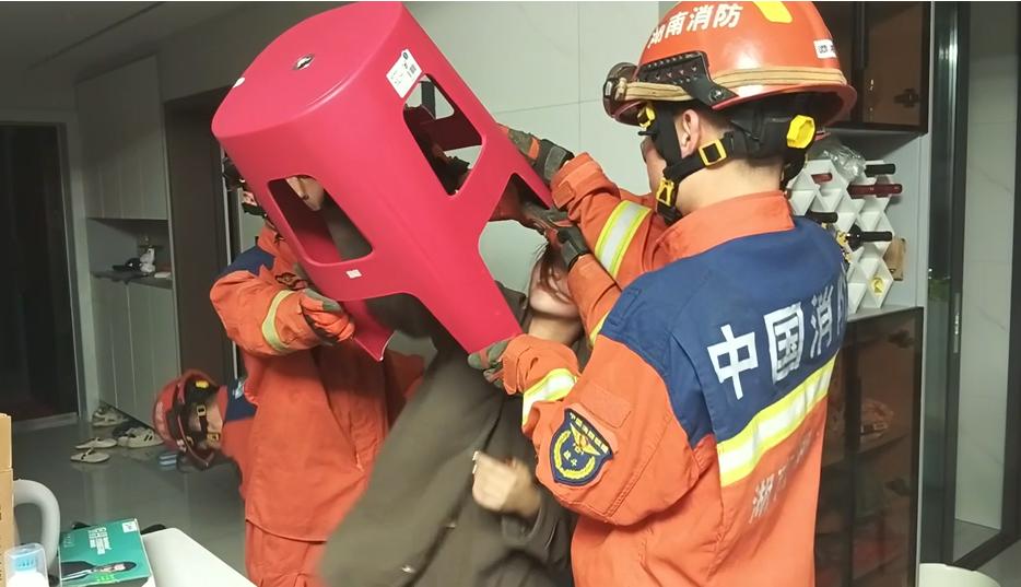 "你好,我女朋友的头和手都卡在椅子上了,你能在这里帮忙吗?"