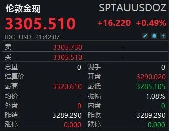 国际黄金价格回到3300美元