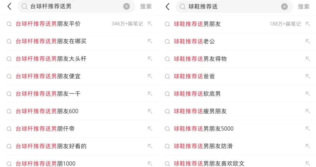 在平台上,品牌5个月的球杆销量已经超过1000万;在小红书中,推荐台球杆的礼物笔记超过340万,甚至超过了送球鞋的相关笔记。