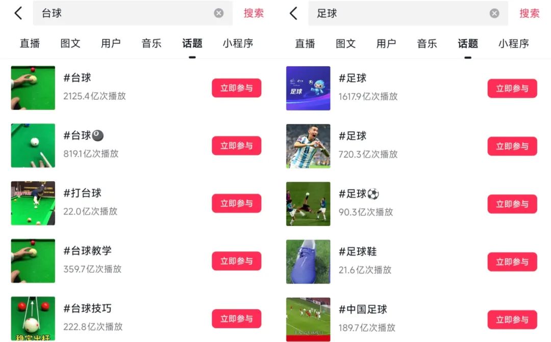 与其他运动相比,台球特别适合短视频形式的社交媒体传播。在Tiktok中,台球话题的播放量甚至高于足球。原因是粉丝之间戏剧性的台球日常生活正好符合短视频对情感内容的要求,几平米大小的赛场正好适合台球直播。
