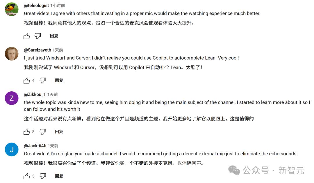有意思的是,大多数观众认为视频做得很好,但很多网友建议陶哲轩换一个新的麦克风,以消除回声。