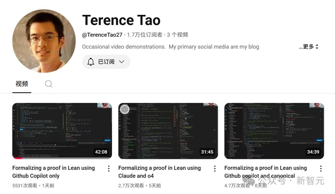 此外,此次共有3个视频,陶哲轩的油管频道已有17,000名订阅者。