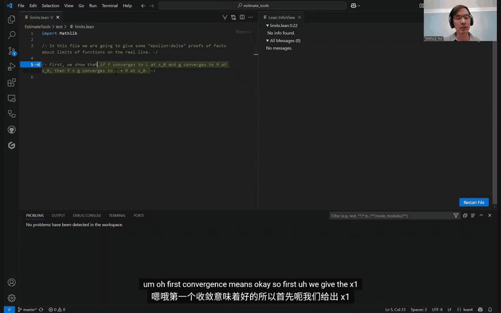最终,经过一番人机配合,这个「和的极限」在Lean中,定律得到了成功的证实。