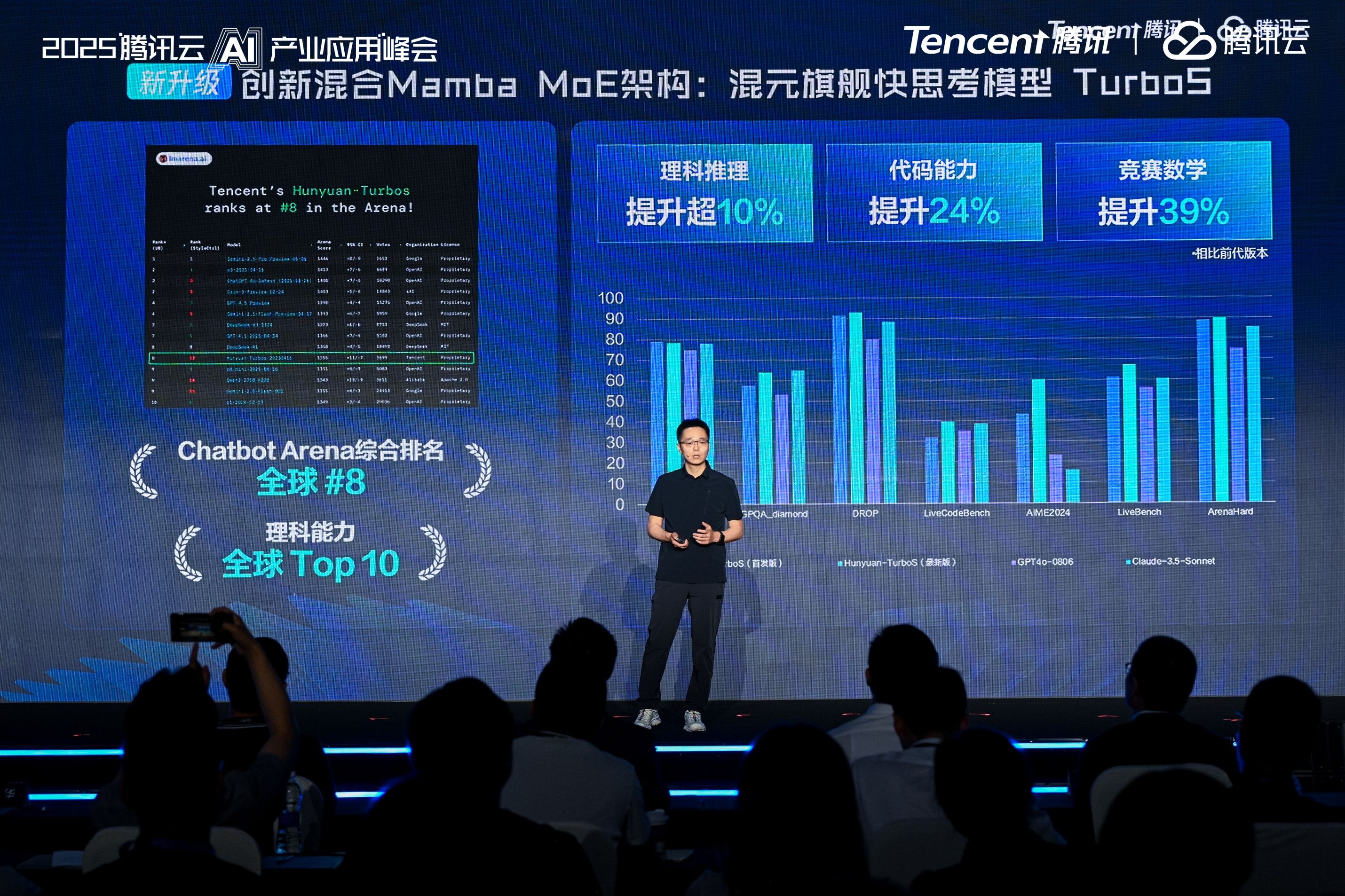基于TurboS底座,腾讯推出了T1-Vision视觉深度推理模型和端到端语音聊天模型混合元Voice。在腾讯AI产业应用峰会上,混合元图像2.0、混元3D v2.一系列多模态模型,如混元游戏视觉生成,也同步上新。