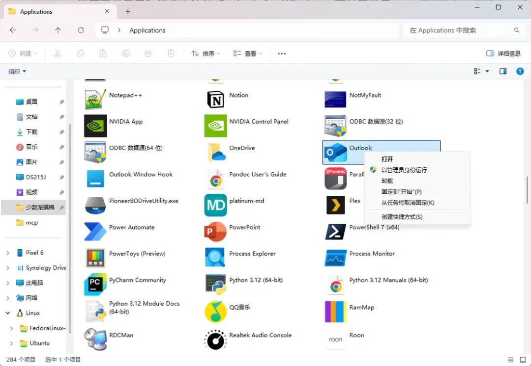 先打开 Windows 在地址栏输入文件资源管理器shell:AppsFolder并且回车。我们来到这儿。 Windows 的「应用」文件夹: