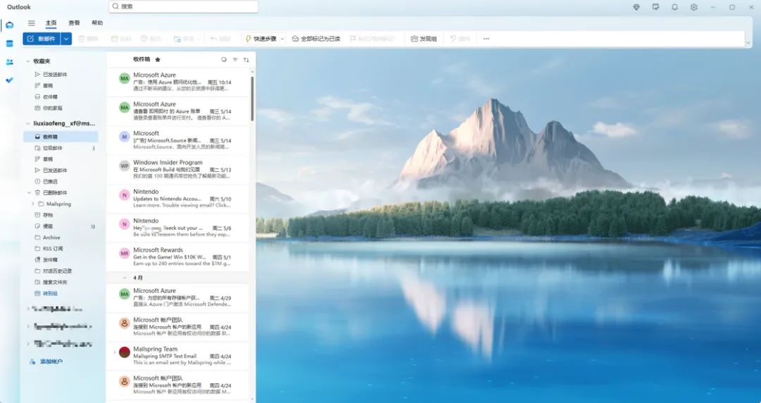 新版 Outlook for Windows 无论是界面还是操作都比较现代,功能区的设计也是近年来微软推广的。 Microsoft 365 Copilot 套件更接近。但是因为它是基于的 Web 与之前选择的开发版本相比, UWP 技术的 Windows电子邮件和日历的应用使卡顿感更加明显,同时也缺乏启动操作、后台流程长驻等功能。电子邮件的收集高度依赖于手动启动。
