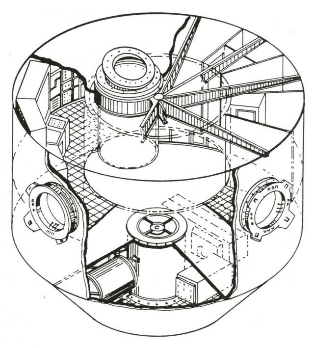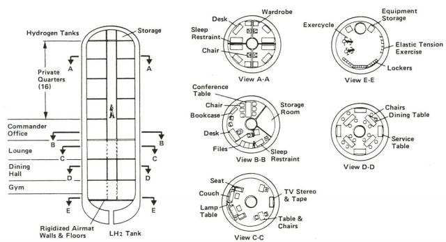图表:由燃料箱改造而成的空间站结构。马丁 · 企业玛丽埃塔