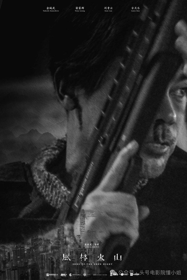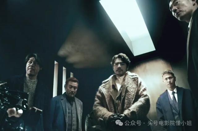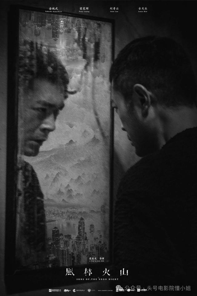 在黑暗中,金城武扮演的角色背对着镜头,透过明亮的缝隙站在黑暗中,仿佛预示着暗潮涌动和一场大戏即将拉开帷幕。