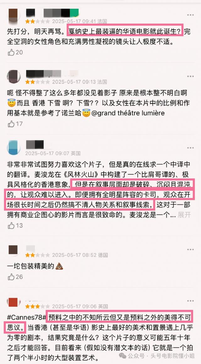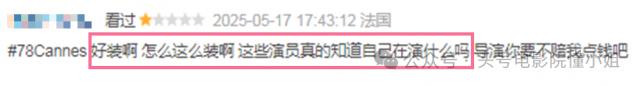 很多人生气地称这部电影为“戛纳史上最装的电影” X 中国电影诞生了”,意思是“电影从头到尾都不清楚在做什么”,“我不能理解”,评价电影“好装,演员真的在演什么”?