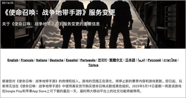 根据官方公告,《使命召唤:战争地带手游》的主要原因是, " 未能像在 PC 和主机玩家一样受到移动玩家的喜爱。 ",说得好听点就是没人玩。