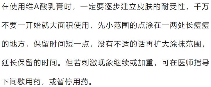 原来,阳光会加重维生素A酸对皮肤的刺激,导致维生素A酸的分解。临床实验提醒维生素A酸可以提高紫外线的致癌能力,所以最好在晚上和睡觉前使用。治疗过程中应避免日晒或采取遮光措施。