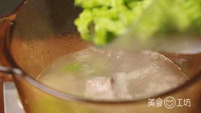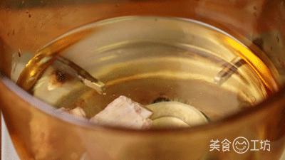 4. 放入汤锅中,加入 3 片姜及足量清水,大火烧开后用小火,炖至排骨软烂。