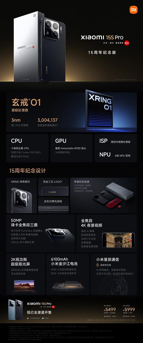 首发搭载玄戒O1!小米15S Pro首次销售4大权益:价值1366元