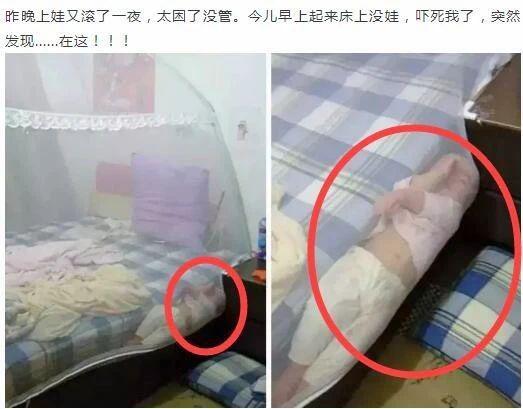 网上有个宝妈分享很搞笑。她附上一张照片,然后附上一篇文章说:“昨晚宝宝又滚了一晚上。我太困了,不在乎。没想到早上醒来看不到宝宝,把我吓死了,直到在床围栏的缝隙里发现了一个熟睡的宝宝……”