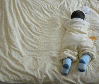 妈妈在哪里,宝宝就滚到哪里,妈妈离开一会儿,也许宝宝就会醒来。