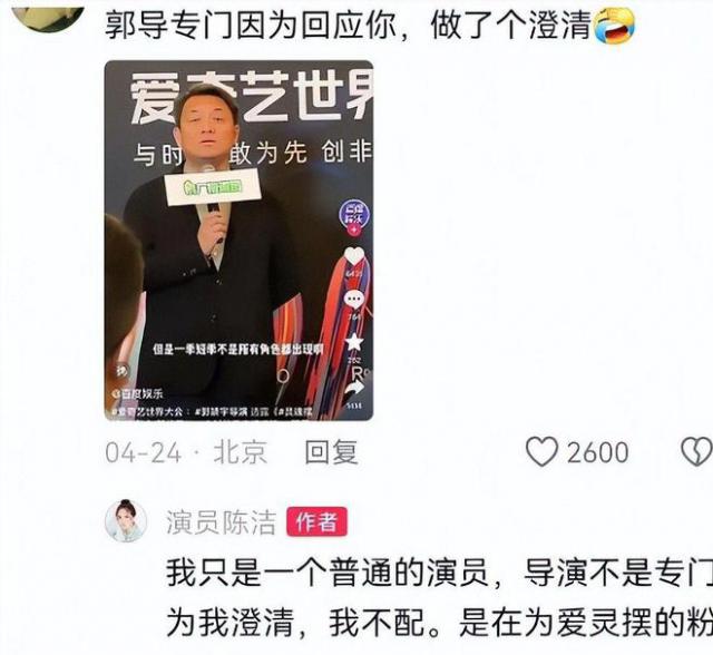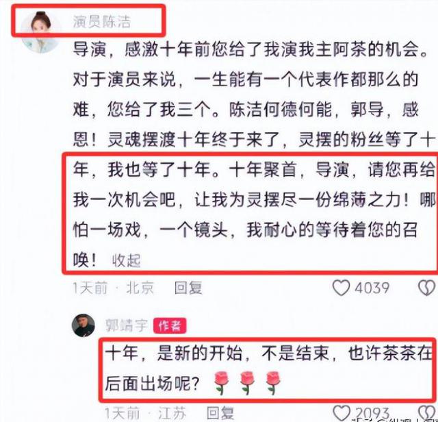 之前在巨导的评论区下面,陈洁本人也在下面发了一条很长的评论,非常真诚地表示希望导演能给她一个机会,哪怕是一个镜头。