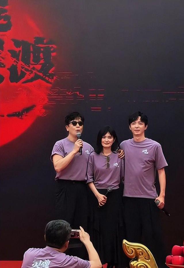 除三人外,导演巨兴茂也在现场,在开机现场,双腿叉着站着,双手背后十分霸气。