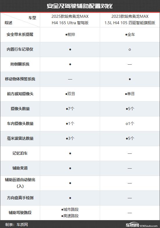 相比之下,除了更时尚动感的外观和内饰设计之外,新车型在配置上也有了一定的进步,缺乏一些功能基本无害,不是“硬伤”。此外,新车型的价格范围有所下降,可以算是对行业“内卷”的有力回应。总的来说,2025年 款哈弗枭龙 MAX 的确是一次真诚的换代,性价比相当高。