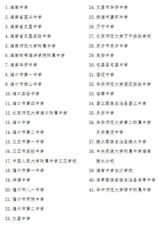 海南普通高中“省级学校”名单(排名不分先后)。海南省考试局提供图片