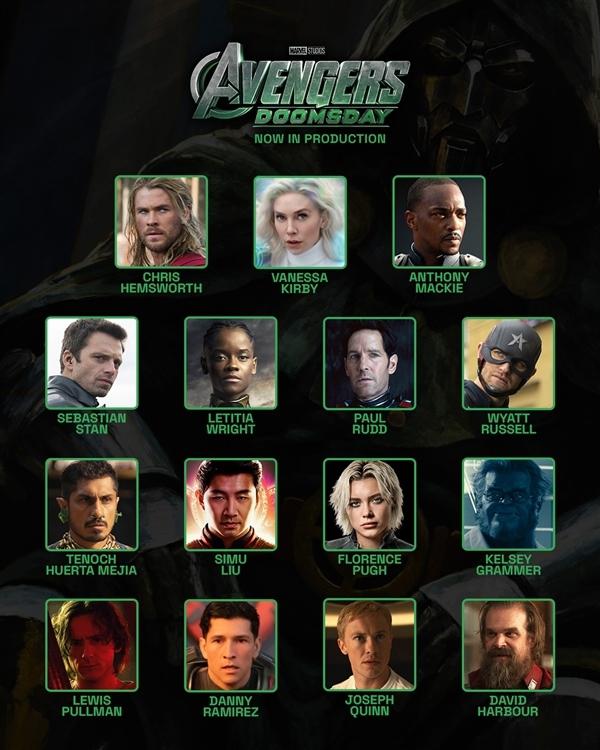 除小罗伯特外 · 当局也表示,唐尼再次回归。 27 名演员 / 包括老版本在内的角色《X 战警》的 X 教授、万磁王、激光眼、魔女等都加入了情怀,洛基、雷神也重归于好,此外还有新神奇四侠、美队、黑豹等人。