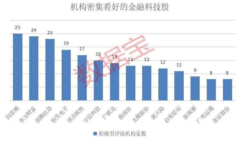 根据证券时报·数据宝的统计,在a股金融科技板块中,有14只股票获得了8个或更多机构的积极评级。在这些板块中, 2024年年报披露后,正股份和宇信科技获得券商出具了包括“金融科技”在内的绩效评价分析报告。