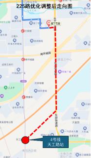 将线路红嘴站调整到长春轨道交通 4 号线天工路站,调整后线路全长 13 公里,车隔可以缩短到 8 每分钟,每天都可以增加 15 个车次,进一步提高线路周转效率,方便沿线市民出行。