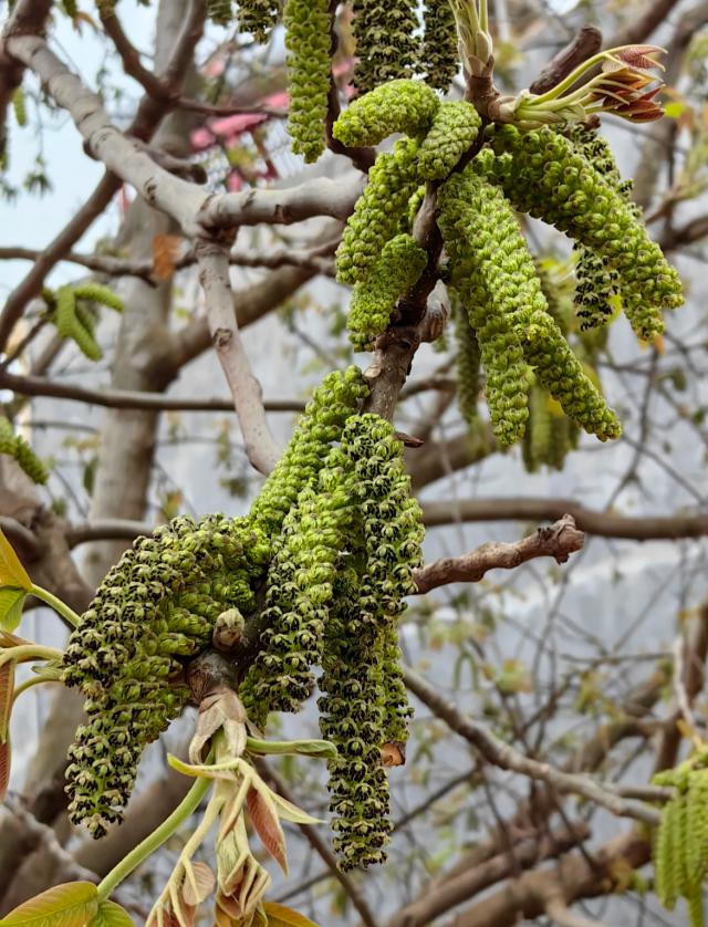 野核桃有点像铸铁,黑而冷,一层壳成功也不一定能打破。相比之下,核桃花看上去可爱多了。