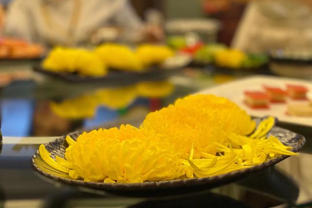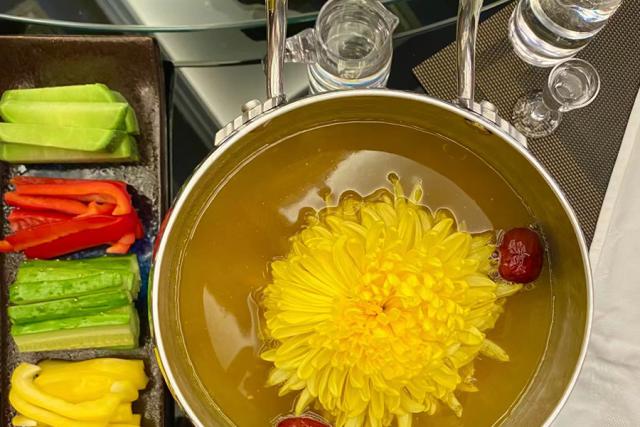 将菊花洗净,放入锅中,与鸡片和鱼片一起滚动。汤是甜的,肉是嫩的,慢慢咀嚼,菊花的香味会渗透到肉里。秋冬干燥,一锅菊花火锅,整个人都湿润了。