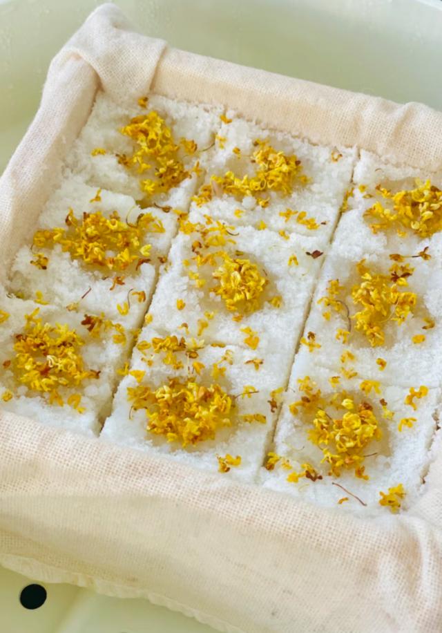 从某种角度来看,娇小玲珑的桂花也是非常霸道的。即使藏在糯米糕里,食客也会一口认出里面甜甜的桂花。
