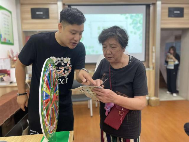 最受欢迎的是“垃圾分类大转盘”。居民旋转有趣的轮盘,指针随机指向日常物品。“什么是奶茶杯垃圾?”“宠物粪便怎么处理?”如果你回答正确,你可以得到萌萌的肉质盆栽。