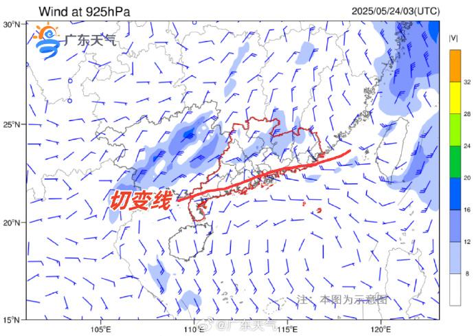 24日,随着冷空气的南压,低层切变线被压到南部沿海地区。珠三角南部和粤西有中到大雨和局部暴雨。中北部以稳定降雨为主,中雨部分下大雨。夜间降雨趋于减弱。