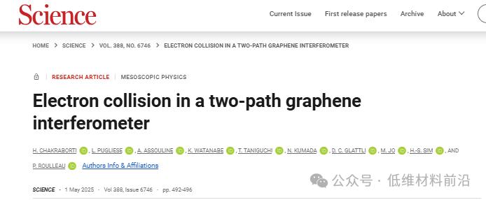 有鉴于此,法国巴黎萨克雷大学P. 韩国科学技术学院HRoulleau教授.-S. 在Science期刊上,Sim教授合作发表了题为“Electron collision in a two-path graphene interferometer"最新论文。