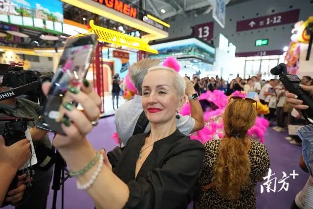 今年11月,第十五届全运会将在粤港澳大湾区举行,其中江门将承办山地自行车、排球、花样游泳等特色。为了呼应全运会的宣传推广,江门不仅展示了侨乡的文化旅游资源,还融入了第十五届全运会的元素。“欢乐”和“幸福”的木偶热情地与游客互动,让大家提前感受到全运会的氛围。