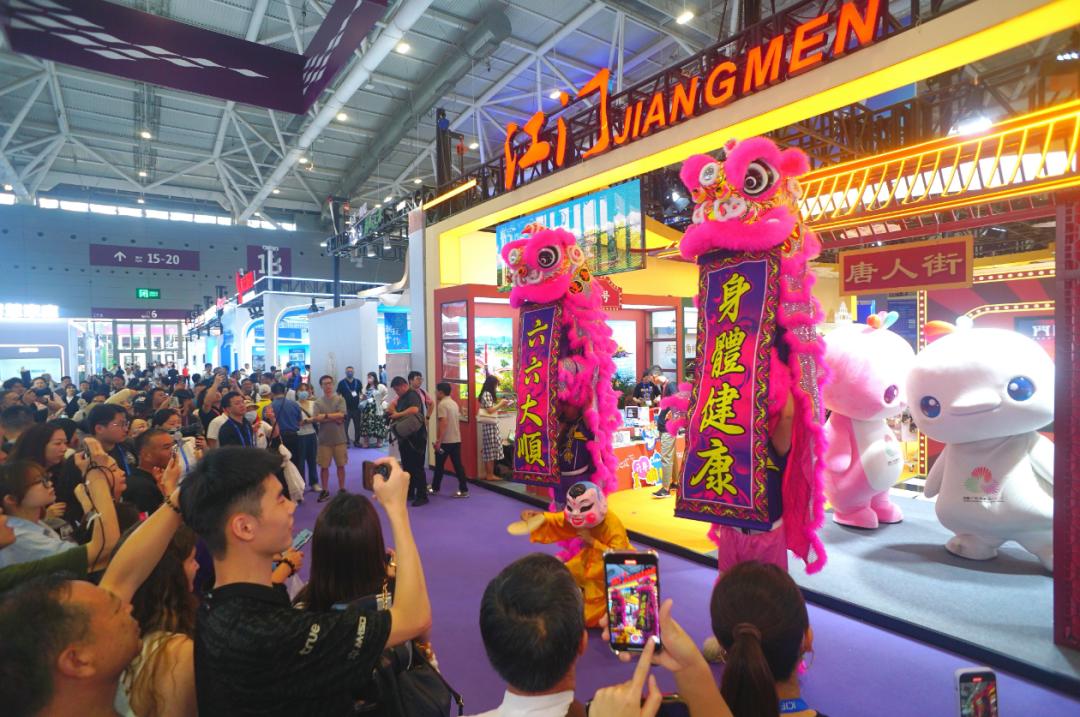 开幕式上,江门展台带来侨都蔡李佛醒狮表演,舞蹈《清风》,吸引众多游客驻足观看、拍照。