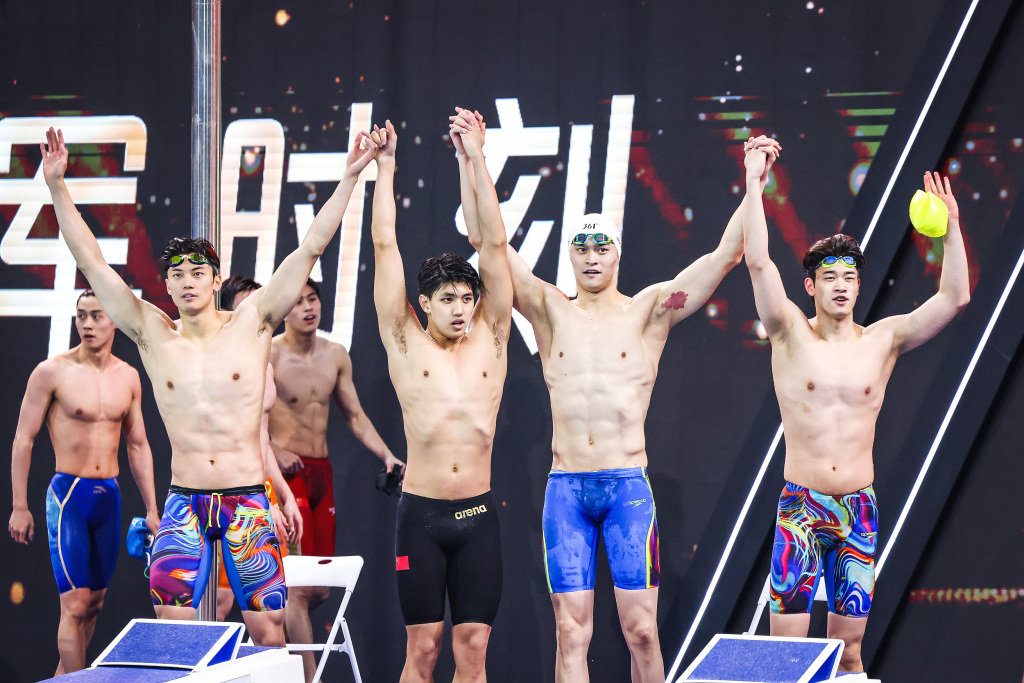 22日,全国游泳冠军赛再决五枚金牌,浙江队获得男子4X200米自由泳接力决赛,潘展乐获得个人第六枚金牌。