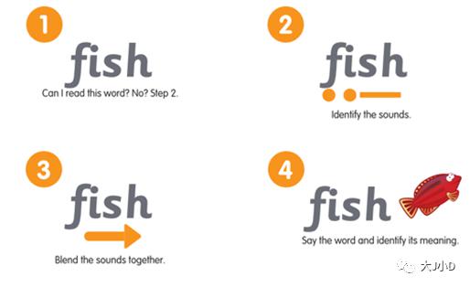 我给你举个例子,前面这个 fish,小 D 在掌握了自然拼读的发音规则之后,自己就可以拼读了。听到这个发音,她立刻明白了这意味着什么。
