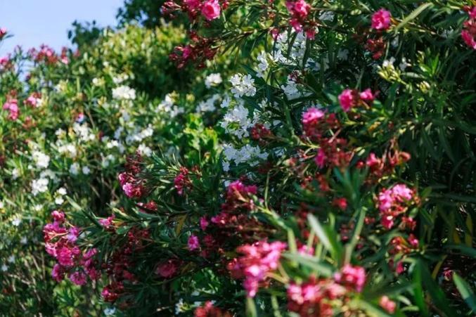 夹竹桃因其花朵艳丽、花期长、观赏性强,深受市民和游客的喜爱。它主要通过插苗和压条来繁殖。植物容易生存,对土壤要求低。它以其易发芽、不挑剔的特点成为园林绿化植物的首选。