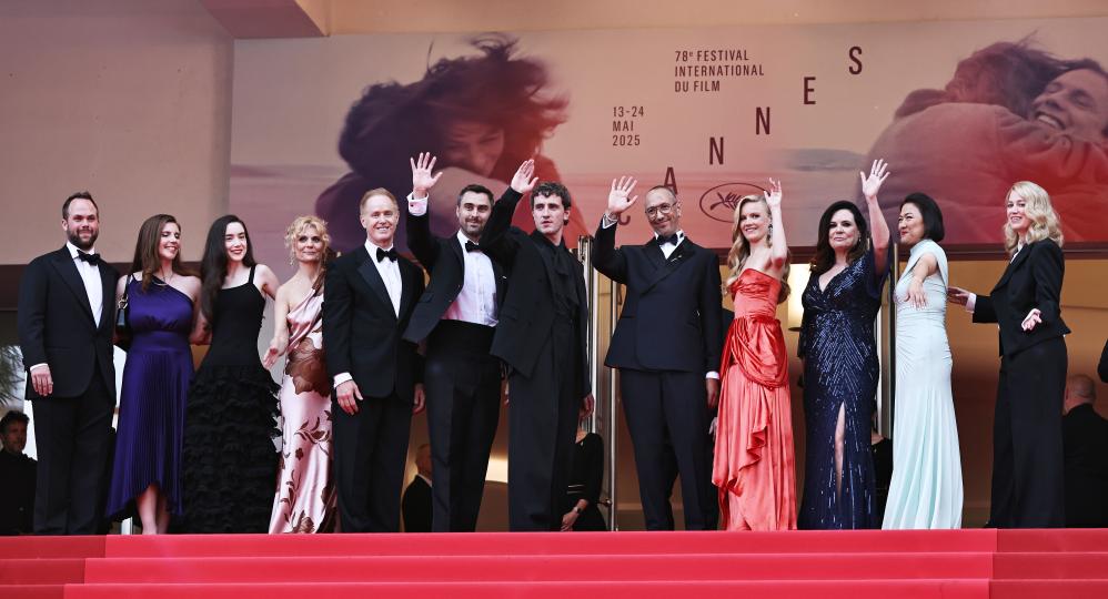 u2003u20035月21日,在法国南部小镇戛纳举行的第78届戛纳电影节上,主要竞赛单元电影《时间留声》的创作者参加了这部电影的首映式。新华社记者 高静 摄