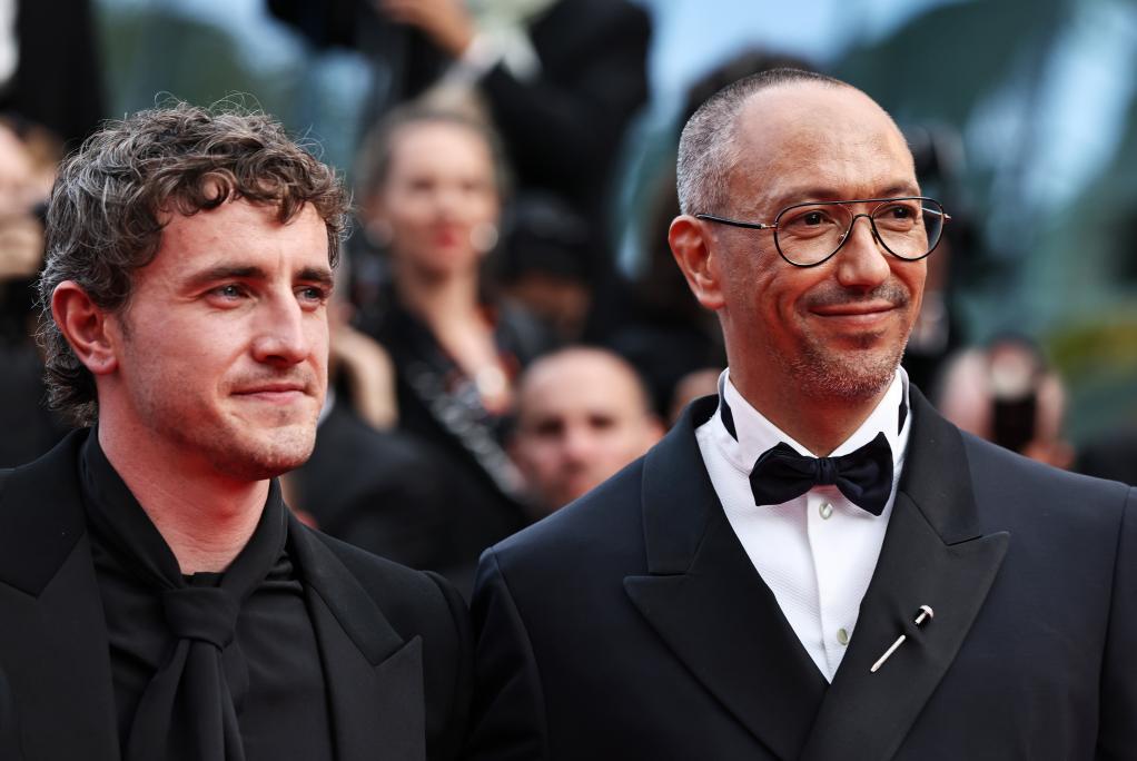 u2003u20035月21日,主要竞赛单元电影《时间留声》、爱尔兰演员保罗·麦斯卡(左)和导演奥利弗·赫曼纽斯在法国南部小镇戛纳举行的第78届戛纳电影节上首映。新华社记者 高静 摄