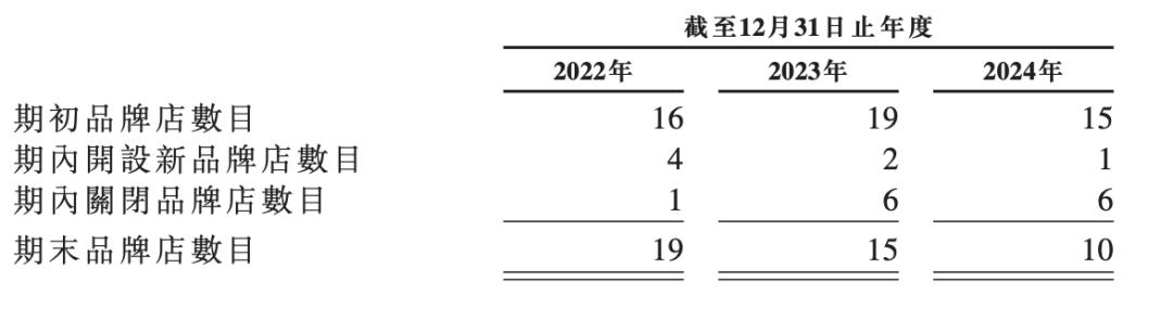 不过直营品牌商店的数量不断收窄。2024年期末,公司品牌店在10家,这个数字在2022年和2023年是19个15个。