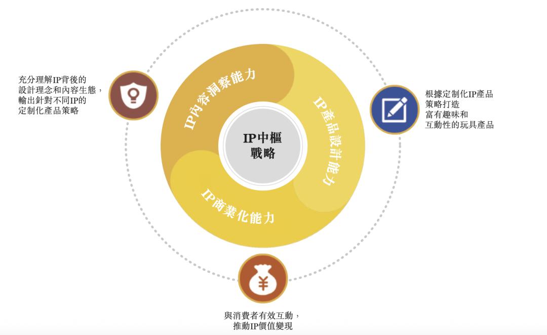 公司以「IP中枢」实现产业链运营的战略。既:以IP为核心驱动跨部门合作,协调各职能部门围绕IP进行规划、开发和实施。