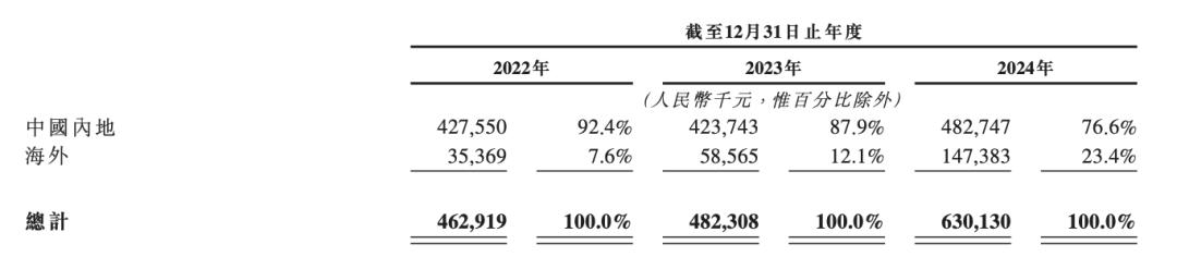 2022年、2023年和2024年,52TOYS国外市场收入分别为3540万元、5860万元和1.47亿元,分别占相应期间总收入的7.6%、12.1%及23.4%。