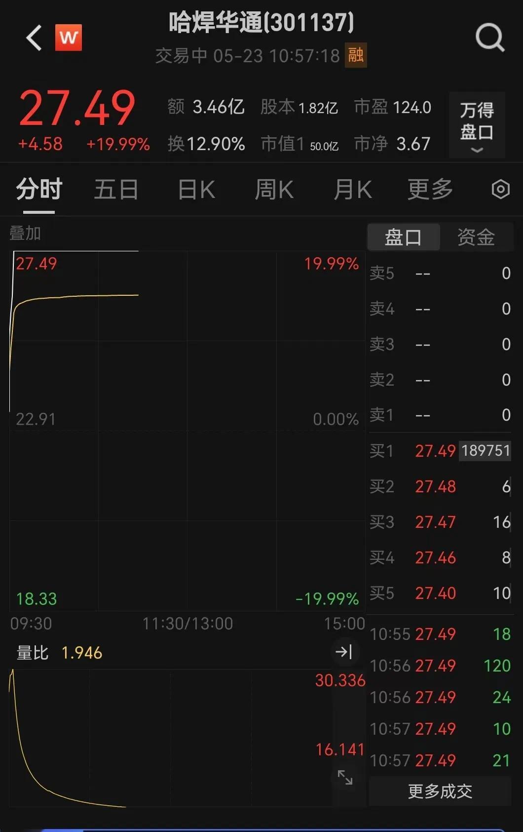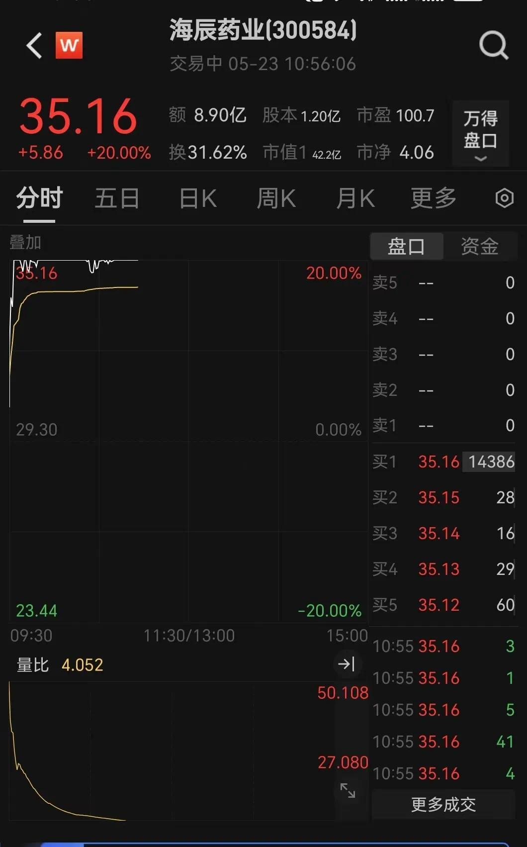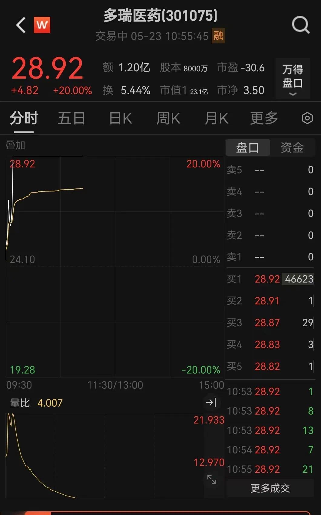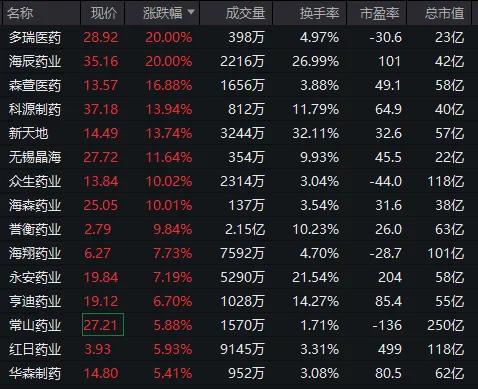 强势股方面,多瑞药业、海辰药业、哈焊华通等直线上涨。