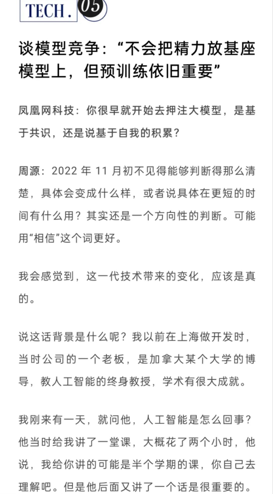 在接受凤凰网科技采访时,知乎周源承认自己不会搞基础模型,而是想堆砌预训练的语义理解,同时想做好内容: