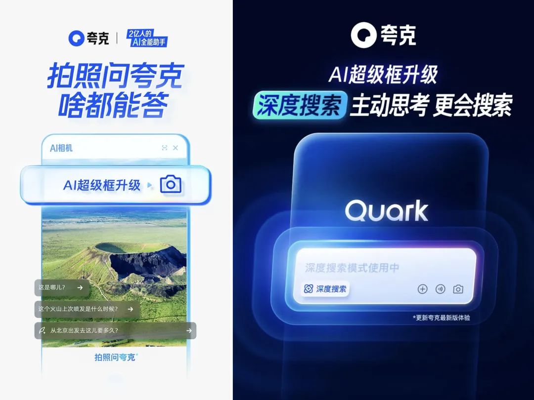 在过去的一个月里,夸克的动作也非常大。AI两次升级,一次升级AI相机,一次升级深度搜索DeepReserch。: